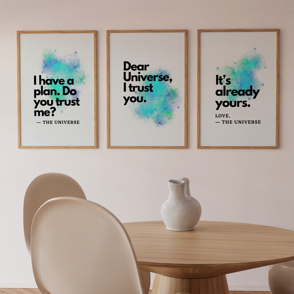 You have a new message from the Universe! Would you like to enhance your space with this art set? If yes, after purchase you can instantly download and print these arts to refresh your space and keep it positive.